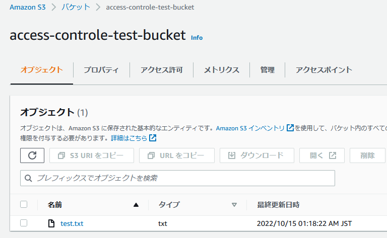 便利なポリシーですが、バケットからオブジェクトをダウンロードすることができてしまいます。