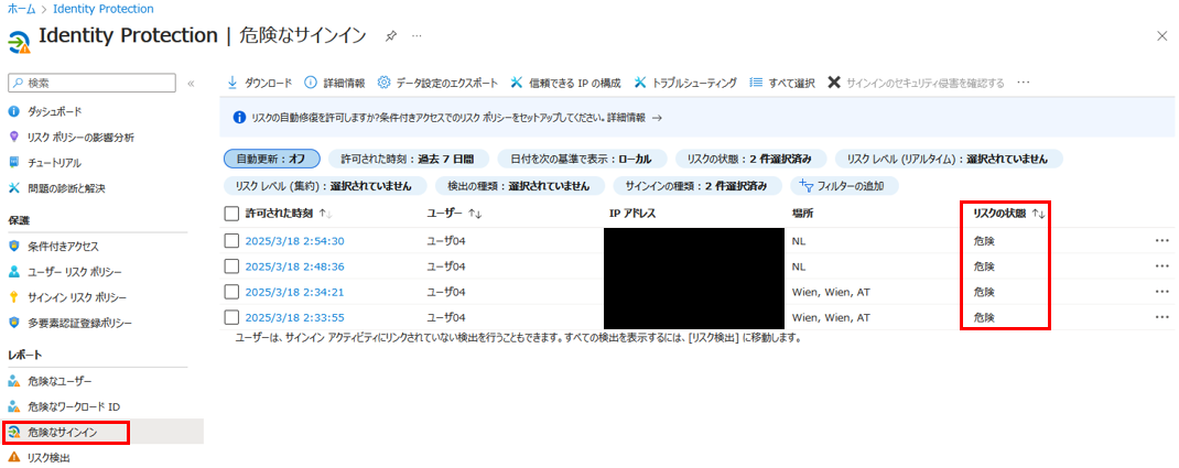 | ユーザ04 | user01@xxx.onmicrosoft.com | Microsoft Entra ID Protection |