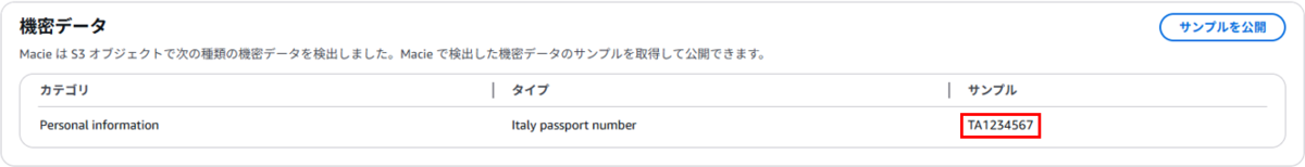 今回はカスタムデータ識別子の分類で、クレジットカード番号が検知されており、想定通りの検出です。