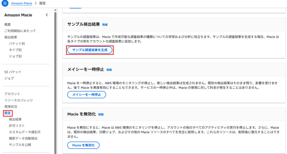 Macie有効化直後にスキャンが開始されていたのは、自動検出機能がデフォルトで有効になっているためです。