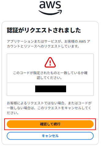 すると認証コード付きのURLが発行されるので、ブラウザで開き続行します。